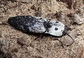 Calais parreysii can reach a length of 30–40 millimetres (1.2–1.6 in). Body is black, elongate and covered with thick white and black scales forming a variegated pattern. Pronotum shows two small black spots. Adults fly from late May to early June. The larvae develop in the wood of the old rotten fallen trees, especially pines (Pinus pallasiana, Pinus brutia, Pinus halepensis). Larvae are active predators feeding on insects living in rotten wood.