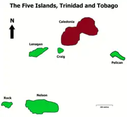 Caledonia Island is an island in the Republic of Trinidad and Tobago. It is one of "The Five Islands" group of six small islands lying west of Port of Spain in the Gulf of Paria. It has an approximate area of just 1.9 hectares.