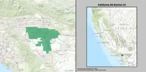 California's 41st congressional district is a congressional district in Riverside County, in the U.S. state of California. The district is currently represented by Republican Ken Calvert.