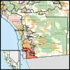San Diego County is split between this district, the 50th district, the 51st district, and the 48th district. The 52nd and 48th are partitioned by San Miguel Rd, Proctor Valley Rd, Camino Mojave/Jonel Way, Highway 125, Upper Otay Reservoir, Otay Lakes Rd, Otay Valley Regional Park, Alta Rd, and Otay Mountain Truck Trail.