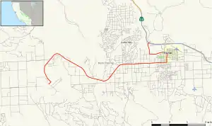 ![]() Map of Kern County in south central California with SR 202 highlighted in red | ||||