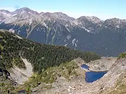 Cirque of Tarns above Caligata Lake. Trophy Mountain behind.