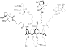 Calixcoca, unlike other anti-cocaine vaccines, is not protein-based.[2] The material that forms the basis of the vaccine is the V4N2 molecule.[4] This molecule stimulates the immune system to produce antibodies that bind to cocaine molecules in the blood. Cocaine molecules that are bound to these antibodies are too large to pass the blood-brain barrier and thus cannot reach the brain and cannot cause psychological effects in the user.[1][5]