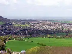 Cam is a large village and civil parish in Gloucestershire, England, situated on the edge of the Cotswolds and contiguous with the town of Dursley, north of Bristol and south of Gloucester. The Cotswold Way runs less than a mile from the village.