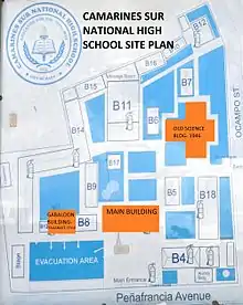 The Camarines Sur National High School, also called CamHi, is the oldest national high school in Camarines Sur and one of the biggest public secondary schools in the Bicol Region, Philippines, having a student population of 11,899 in the school year 2021–2022.[1] It was established in 1902.[2]