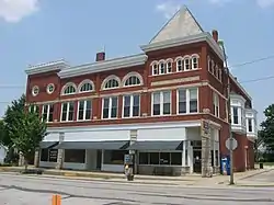 The Camden Masonic Temple, also known as Mount Zion Lodge #211, is a historic Masonic Lodge located at Camden, Carroll County, Indiana. It was built in 1902, and is a three-story Romanesque Revival style brick and limestone building. It was used historically as a meeting hall, as a specialty store, as a department store, as a professional building, and as a multiple dwelling.[2]: 5