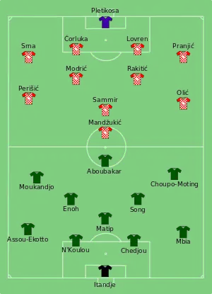 - 1 2 "Tactical Line-up – Group E – Japan-Cameroon" (PDF). FIFA.com. Fédération Internationale de Football Association. 14 June 2010. Archived from the original (PDF) on November 9, 2012. Retrieved 14 June 2010.