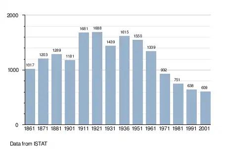 - ↑ "Popolazione Residente al 1° Gennaio 2018". Italian National Institute of Statistics. Retrieved 16 March 2019.