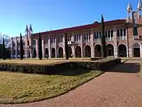 Founded in 1912, the university has been developed in a relatively uniform Mediterranean Revival style, emphasizing light brick facades, quadrangles, archways, and decorative columns. There are notable exceptions to this style, including examples of brutalism and modern architecture. In recent decades, new buildings have also been constructed outside the original pentagonal campus, but nearly all academic and undergraduate residential facilities are still located there.