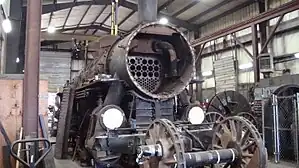 No. 7312 continued to remain in service up until early 2009 when it was taken off the active roster to undergo its heavy, extensive Federal Railroad Administration (FRA) 1,472 day inspection and overhaul.[1] However, due to the railroad's busy contract work and upkeep of their fleet of four other operable steam locomotives (GW 90, CN 89, Thomas BEDT 15, N&W 475) work was slow, if not non-existent. Since 2021, work began anew, with significant progress being reported. Work stopped again in 2022, but the locomotive was moved to the backshop in early 2023, with hopes of completion sometime in 2024.[1][5]