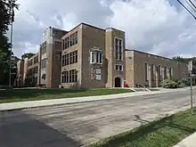 In 1900, a report on the "annual school meeting", held in the "union school building", reveals that the school would cost $7,947 (equivalent to $279,544 in 2022) to run for the coming year, of which $4,495.32 (equivalent to $158,127 in 2022) would be raised by tax. There were 54 voters at the meeting, which reduced the Board of Education from nine to five members.[12] After its abandonment in 1914 when the Greenwood Street Elementary School was built, it became Strait's Mill, then a feed store, before being torn down about 1952 and replaced by a bus garage. Adjacent to it to the south, between Fifth and Sixth Streets, is the Rotary Field, which remained the venue for school sports until the 1990s, when new facilities were built on Purdy Creek Road.