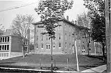 Canisteo Academy, early 20th century. Note the gas street lamp. Overhead is a telephone wire.