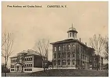 Canisteo's first school was a one-room school on Greenwood Street, across from the present Baptist Church.[8][9] A schoolhouse was built in 1826.[10] There were a variety of one-room schools around the township.