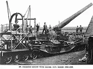 ![]() A 240 mm modèle 1893-1896 TAZ, on a St Chamond railway mounting. | |