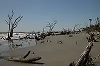 Bulls Island is at 4,900 acres (20 km2) the largest of the barrier islands that are part of the refuge.[1] A regular ferry service to Bulls Island is provided by a private charter service at Garris Landing. The Island was the site of a third lighthouse, Bulls Bay Light which was deactivated in 1913 and lost to the sea years ago. The island also has Boneyard Beach, a beach where a forest has been encroached on by the sea.[2]
