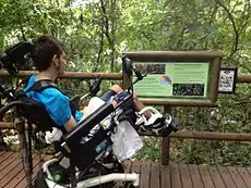 The tour around the park has slopes less than 6%, areas with benches for rest, park information booths, and special health services.