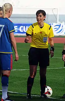 Carina Susana Vitulano (born 22 July 1975) is an Italian football referee. She is 169 cm (5 ft 6+1⁄2 in) tall and has been on the FIFA International Referees List since 2005.[1] Vitulano shrugged off a serious knee injury sustained at the 2014 FIFA U-20 Women's World Cup to be selected for the 2015 FIFA Women's World Cup.[2][3]