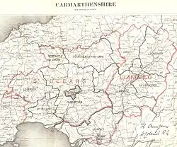 Carmarthen (Welsh: Caerfyrddin) was the name of a parliamentary constituency in Wales which returned one Member of Parliament (MP) to the House of Commons of the Parliament of the United Kingdom between 1542 and 1997. It was named Carmarthen Boroughs from 1832 to 1918. At its abolition in 1997 it was replaced, partly by the new Carmarthen East and Dinefwr constituency and partly by Carmarthen West and South Pembrokeshire.