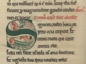 The Carmen contains instructions on how to identify its dedicatee and author by means of acrostics. The first letter of each stanza spells the names. The names given by this method in the Latin text are Suerius and Gosuinus.[13] The author was first identified as the Cistercian monk Goswin of Bossut by Fortunato de São Boaventura in the 19th century. Boaventura also identified "French idiomatic elements" in the Carmen.[14] His hypothesis has been strengthened since.[15] It would appear that Goswin was a priest who accompanied the fleet and remained behind in Portugal in the service of Bishop Soeiro.[16]