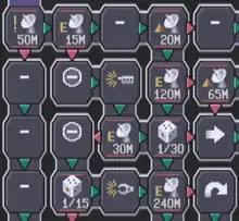 The action associated with a chip is performed when control flow reaches it. Actions include simple movements, aim and fire operations, scan for enemy or friendly units, incoming projectile detection, random number generators (to give, for example, a 50% chance of jumping left), variable assignments and checks, and even rudimentary inter-OKE communications, affected by assigning a color to a "channel" which can then be read by other friendly units.