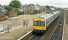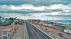 Carnoustie railway station is a railway station which serves the town of Carnoustie, Angus, Scotland. It is sited 10 miles 33 chains (16.8 km) east of the former Dundee East station, on the Dundee to Aberdeen line, between Golf Street and Arbroath. There is a crossover at the south end of the station, which can be used to facilitate trains turning back if the line north to Arbroath is blocked.[3] ScotRail manage the station and provide almost all services.