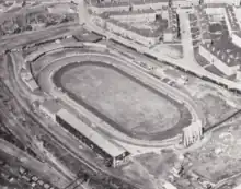The Carntyne Greyhound Racecourse was situated between the Parkhead and Carntyne areas of Glasgow and opened for greyhound racing on 17 September 1927.[2] The stadium ran along the railway track sandwiched between the railway and Myreside Street and was built on the site of a former running and trotting track. There were entrances on Myreside Street and at the far end of Duke Street just before the railway bridge and on the east side was a large wheel and axle works.[3][4]