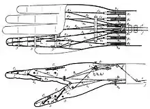 Eichler's model also adopted design features from the Iron Hand: the wrist could bend at the wrist and a radial bearing made it possible to passively rotate the hand in relation to the forearm shaft (pronation or supination).[5]