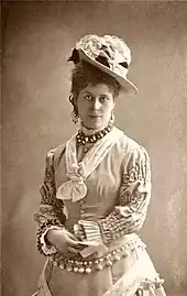 Hill and her husband were reported as being in London in 1890: "Miss Hill has been before the public a good many years, and is still young; but it is not every lady of her age on whom nearly a quarter of a century of stage service leaves so insignificant a mark."[30] In October 1890 Hill was at the Standard Theatre, New York, in Reckless Temple, by Augustus Thomas, as Mrs Billingsley, where her performance was described as "something of a disappointment".[31] She returned to England in the early 1890s when her marriage with Kelcey ended. In 1892, she played Lady Jones in The Guardsman by George R. Sims and Cecil Raleigh at the Court Theatre; a reviewer wrote that she "doesn't look as if she is out of her teens, plays with great spirit and success as a fashionable society lady".[32] She remained at that theatre until at least 1893.[33] In 1896 Hill played Dora Thornhaugh in Home at the Haymarket Theatre.[34]