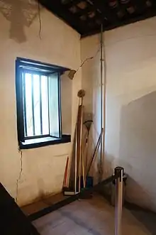 The main house of Sítio da Ressaca has few rooms, only six, including the porch. The roof is of the gable type, which was common among some buildings of the period. The doors and windows are made of canela-preta, a strong and resistant wood, and the roof tiles were produced by slaves. But unlike other Bandeirista houses, Sítio da Ressaca did not have a chapel in a separate room, only a niche for the placement of the image of a saint.[17] The porch is fixed to the retaining wall.[16]