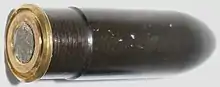 Caseless ammunition (CL),[1] or caseless cartridge, is a configuration of weapon-cartridge that eliminates the cartridge case that typically holds the primer, propellant and projectile together as a unit. Instead, the propellant and primer are fitted to the projectile in another way so that a cartridge case is not needed, for example inside or outside the projectile depending on configuration.