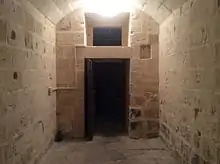 Apart from a courthouse,[247][248] the Castellania also served as a prison where suspects and convicts were imprisoned.[17] The entrance of the former prison from St John Street and is locally known as Prisoner's Street (Triq il-Kalzrati) or Hook's Street (Triq il-Ganc).[249][250] Serious criminal offenders from Gozo would be taken to the court in Gozo, and on the decision of the administrative Castellan would be sent to a temporary prison in Fort Chambray, before travelling by sea to Valletta and kept locked at the Castellania until his case is heard.[251]