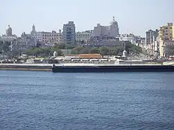 Colonial Cuba was a frequent target of buccaneers, pirates and French corsairs seeking Spain's New World riches. In response to repeated raids, defenses were bolstered throughout the island during the 16th century. In Havana, the fortress of Castillo de los Tres Reyes Magos del Morro was built to deter potential invaders, which included the English privateer Francis Drake, who sailed within sight of Havana harbor but did not disembark on the island.[1] Havana's inability to resist invaders was dramatically exposed in 1628, when a Dutch fleet led by Piet Heyn plundered the Spanish ships in the city's harbor.[2] In 1662, English pirate Christopher Myngs captured and briefly occupied Santiago de Cuba on the eastern part of the island, in an effort to open up Cuba's protected trade with neighboring Jamaica.[2]
