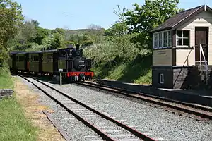 Castle Caereinion railway station is a railway station on the 2 ft 6 in (762 mm) narrow gauge Welshpool and Llanfair Light Railway in Mid Wales. It serves the nearby village of Castle Caereinion and lies 3+34 miles (6.0 km) from the Welshpool Raven Square terminus.[3] The station was opened on 6 April 1903.[1]