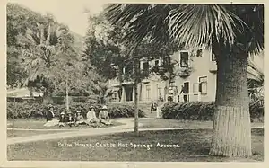 Visitors next to the Palm House at Castle Hot Springs, Arizona, in 1908