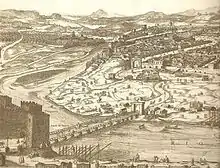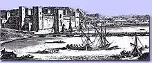 During the Almohad domain in 1171, Jucef Abu Jacub, king of Isbilia, ordered the construction of the Puente de barcas (Bridge of Boats), a floating bridge laid over a row of boats, to link the east and west shores.[1] That bridge was chained to what was then called the Castle of Gabir.