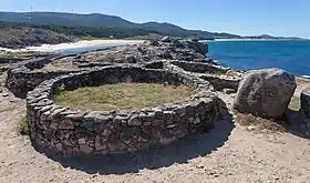 The Castro de Baroña is an Iron Age fortified settlement located in the parish of Baroña, a municipality of Porto do Son in the province of A Coruña (Galicia, Spain. GPS Co-ordinates: 42°41'41.40"N 9°1'57.10"W). The settlement, surrounded by two walls and containing twenty roundhouses that still remain today, was built on a peninsula and inhabited from the 1st Century BC to the 1st Century AD.