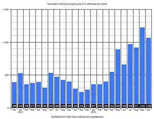 Following are the monthly IBC Project civilian death totals, from the US pullout in December 2011 onwards.[2]