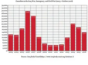 2. 1 2 "Documented civilian deaths from violence". Iraq Body Count. Retrieved 9 January 2015.