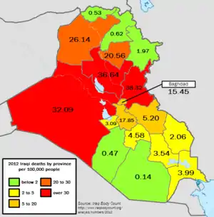 2012 Iraqi deaths by province, per 100,000 people
