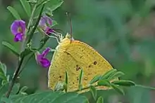 Catopsilia florella, the African migrant, African emigrant, or common vagrant, is a butterfly of the family Pieridae. It is found in Africa (including Madagascar), Arabia (United Arab Emirates, Saudi Arabia, Oman) and the Canary Islands. Like Catopsilia pomona, this species also has a habit of migration.[3]