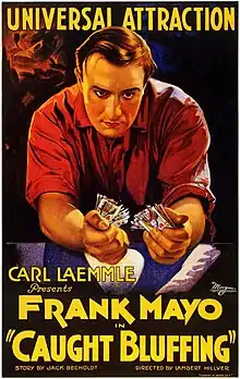 Caught Bluffing is a 1922 American drama film directed by Lambert Hillyer and written by Charles Sarver. The film stars Frank Mayo, Edna Murphy, Wallace MacDonald, Jack Curtis, Andrew Arbuckle, and Ruth Royce. The film was released on September 18, 1922, by Universal Film Manufacturing Company.[1][2][3]