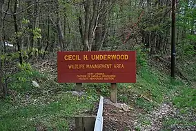 ![]() Sign for Cecil H. Underwood WMA along US 250 | |