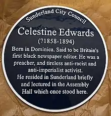 Celestine Edwards was born in Dominica. While scholars tend to agree that Edwards' birthday fell on 28 December, there is some disagreement about the exact year of his birth. One historian of Black British history, Peter Fryer, provides 1858 and possibly even 1859 as Edwards' birth date,[1] while another, Jonathan Schneer, cites 1857.[2]