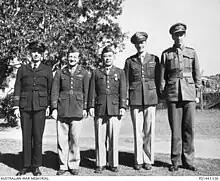 Major General Akin's Executive Officer, Major (later Colonel) Joe R. Sherr had been evacuated from the Philippines (Station 6). He was responsible for arranging for the first group of US "SIGINT" personnel to come to Australia, and as Akin's control was indirect he was responsible for day-to-day running of the bureau. He was killed when returning from a liaison visit to the wireless Experimental Centre in India, when his aircraft crashed 3 km from Calcutta airfield on 21 September 1943.[2] Sandford had wanted to send "Pappy" Clark[nb 1] to the conference but Akin said that MacArthur would not agree to send Clark (only a major) and so sent Colonel Sherr instead.[3]