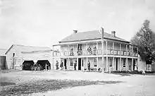 A hotel was operated on the main corner of Centre Inn, and was used by people travelling by horse-drawn carriage between Erin and Guelph.[4] A covered wagon carrying mail and passengers between those locations would stop at Centre Inn to board passengers. The passenger service continued after rural mail survive began.[4] The hotel was used for meetings by local groups, such as the South Wellington Teachers' Association, which met at Centre Inn in 1864, and the Eramosa Township Council, which held meetings at Centre Inn from the 1870s to 1890s.[6][7][8]