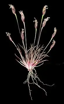 It is found among granite outcrops, growing amongst mosses and in wet areas in the Mid West, Wheatbelt, South West, Great Southern and Goldfields-Esperance regions of Western Australia where it grows in sandy-clay soils.[1]