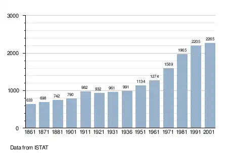 - ↑ "Popolazione Residente al 1° Gennaio 2018". Italian National Institute of Statistics. Retrieved 16 March 2019.