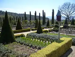 The gardens were begun in 1978 by the owner, Cécile Chancel, with the help of landscape designer Tobie Loup de Viane. The garden was finished in its present form in 1990 and became a Remarkable Garden of France in 2005.[2] The garden is built on three terraces cut into a hillside overlooking the vineyards.