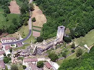 The Château de Gavaudun is a castle in the village of Gavaudun (Lot-et-Garonne, France) on the river Lède, near the Périgord noir region. It was built on a rocky spur and overhangs the river. The lofty 13th century keep rises 25m above the level of the rock.[1]