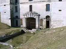 The château is a complex of three buildings. The entrance was a semicircular common, only a portion of which still remains. Contiguous with the common was a covered porch which has completely disappeared over the years. Lastly was an open air fixed bridge leading from the covered porch to the pentagonal house.